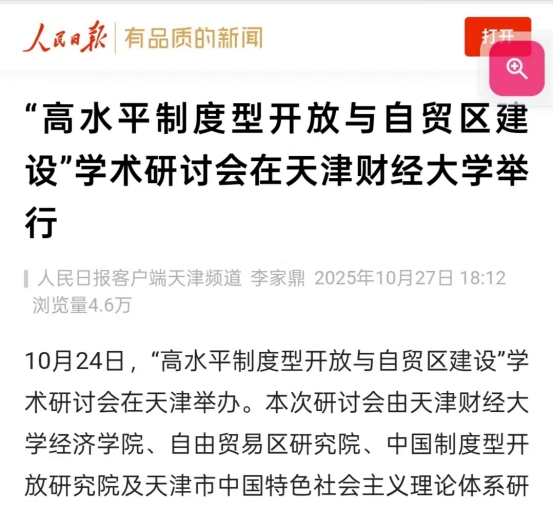 “经”讯前沿丨《人民日报》客户端、中国教育新闻网、津云报道赏金猎人App 举办的“高水平制度型开放与自贸区建设”学术研讨会