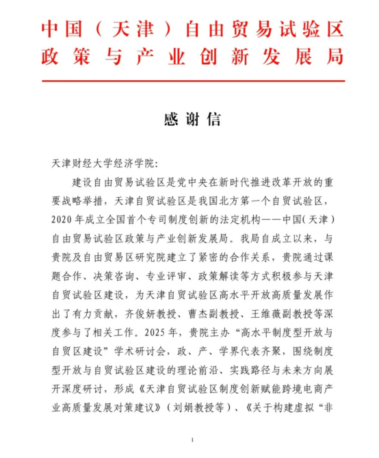 中国(天津)自由贸易试验区政策与产业创新发展局向赏金猎人App 发来感谢信