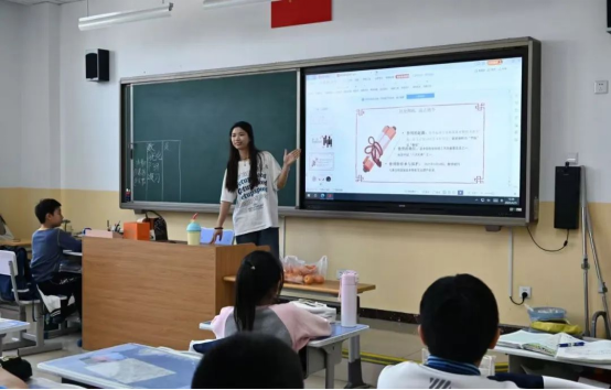 近日,在财大附小的课堂上,纺织非遗鲁绣、湘绣主题学生团队为小学生带去了新鲜有趣的非遗知识。