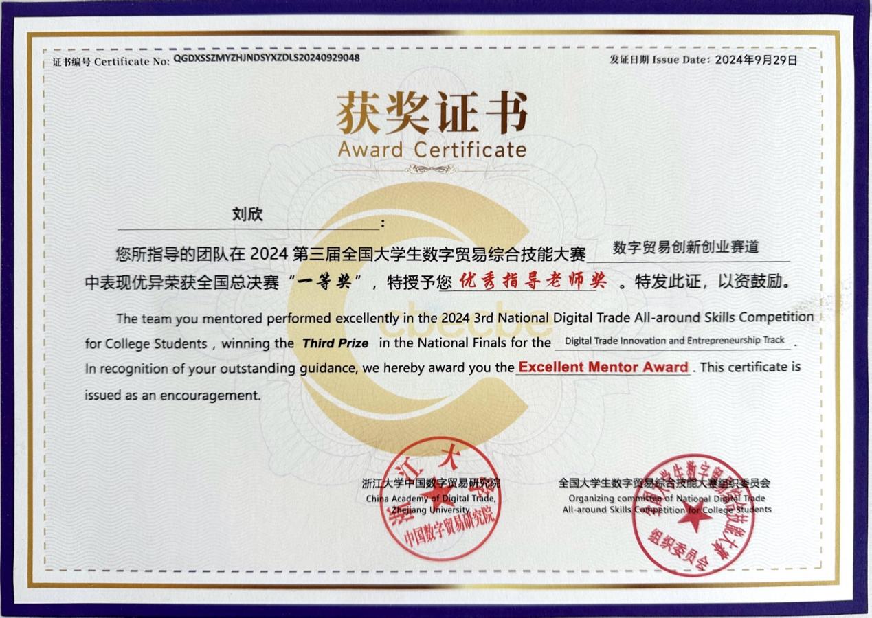 将以本次大赛为契机,进一步创新人才培养模式,强化数字贸易与跨境电商领域的实践教学和科研成果转化,助力高质量的数智财经人才培养和学科建设迈上新台阶。