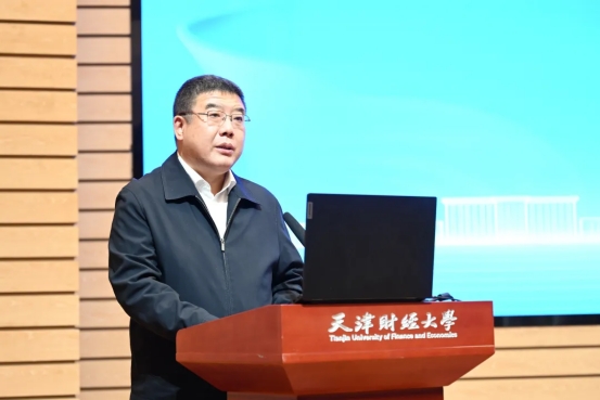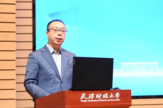 校党委副书记、校长孟昊教授出席开幕式并致辞。他指出,2025年是承前启后的关键之年,在这一历史交汇点,上合组织天津峰会的成功举办,为国际经济合作与发展擘画了宏伟蓝图,本次会议汇聚了政、产、学界的智慧与远见,热切期望能借此平台,共同聚焦理论前沿的“新突破”、服务发展的“真对策”、人才培养的“强根基”,持续深化协同创新,为国家高水平制度型开放贡献“天财智慧”。