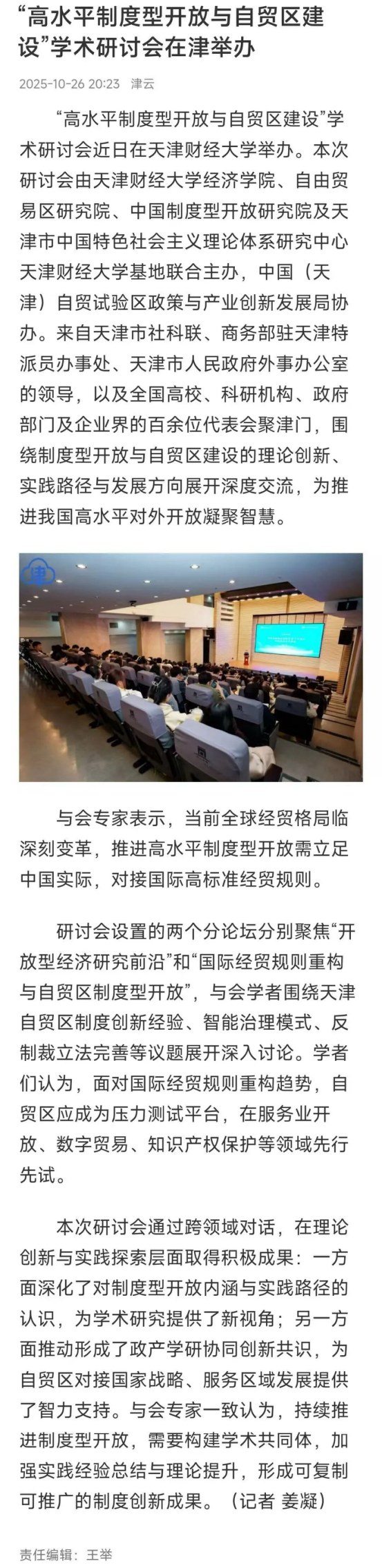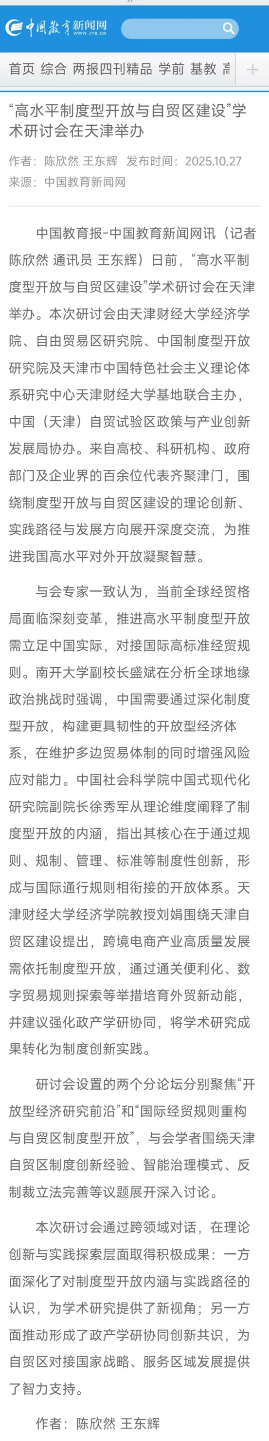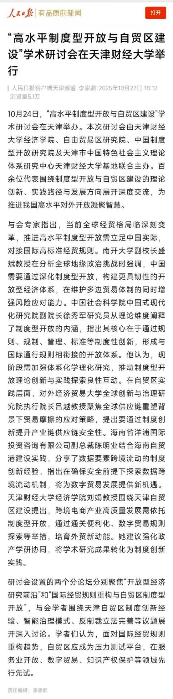近日,《人民日报》、中国教育新闻网、津云报道“高水平制度性开放与贸易区建设”学术研讨会在赏金猎人App 举办。