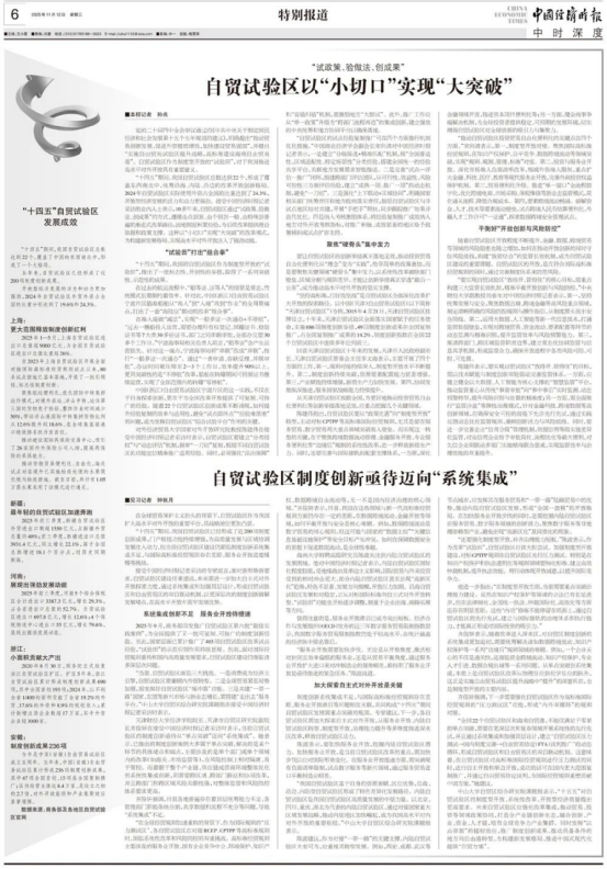 院长、天津市自贸区研究院副院长齐俊妍在接受中国经济时报记者采访时表示,当前自贸试验区的制度创新亟待从“单点突破”迈向“系统集成”。她表示,已推出的制度创新案例大多属于单点突破,解决的是某个环节的具体堵点和痛点,主要涉及的是单个部门或单个领域内的改革(如海关、市场监管等),在风险控制上相对隔离、易于管控。而着眼于整个产业链、供应链或营商环境整体优化的系统性集成创新,则需要跨区域、跨部门联动和协同改革,并且跨部门和跨区域风险关联性强,对整体监管和风险防控体系要求更高。