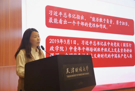 党委副书记李颖老师为各位学员讲授了以“中国共产党人的历史担当——做勇于担当的新时代青年大学生”为主题的入党积极分子培训第一讲。