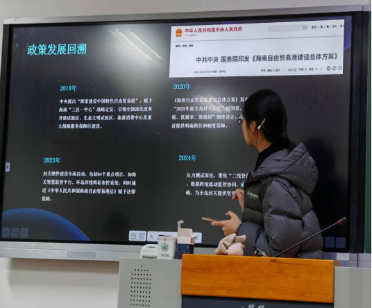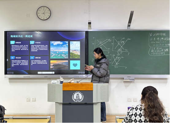 聚焦的是海南封关这一事件郑杭敏讲述了海南封关的“当下进展”,让同学们先明确当前阶段定位,接着回溯“政策历程”,结合“一线放开、二线管住、岛内自由”的核心规则,呈现封关政策的演进逻辑,为后续分析铺垫背景。