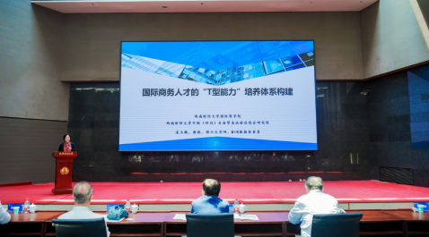 全国国际商务专业学位研究生教育指导委员会委员、西南财经大学中国(四川)自贸试验区综合研究院院长姜玉梅教授作了题为《国际商务人才的“T型能力”培养体系构建》的主旨演讲。姜玉梅教授提出,全球化3.0时代下,国际商务人才培养需构建以跨境合规等核心能力为纵向支柱,以技术素养、地缘思维、系统视野为横向联结的“T型能力”框架,强调从“知识叠加”向“能力复合”的转变,并分析了中国人民大学、浙江大学、对外经贸大学、阿里巴巴国际站“数字外贸人才计划”等创新性做法。